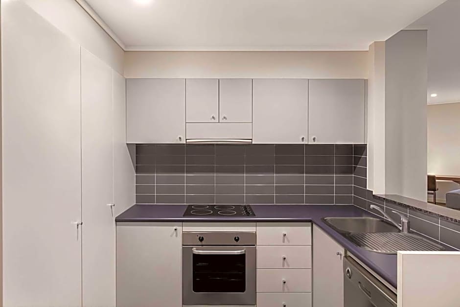 This elegantly styled apartment features a fully equipped kitchen, laundry facilities and a large living area.